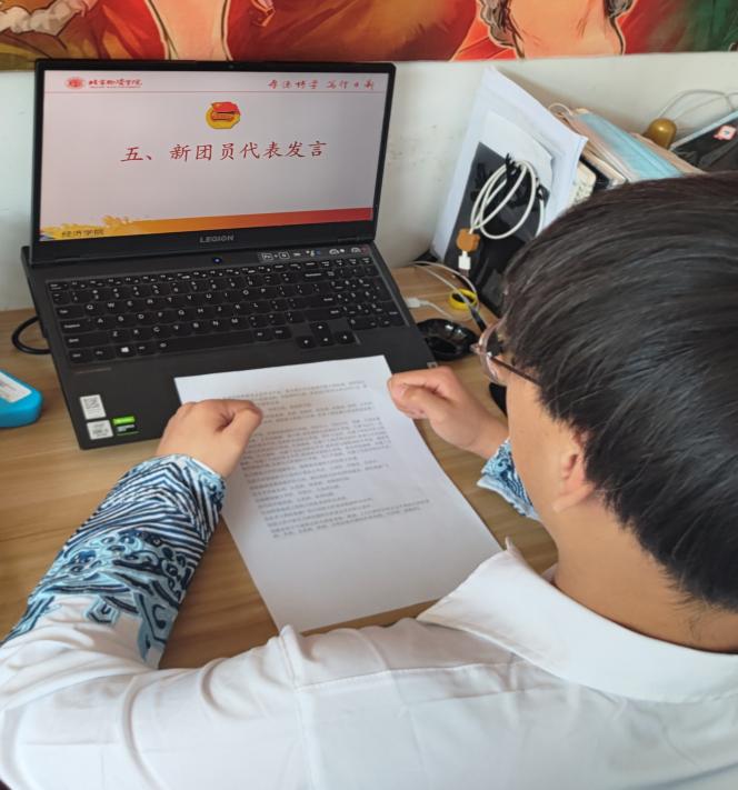 大会第五项,由张祎阳同学作为新团员代表发言。他表示一定遵守团的章程,执行团的决议,服从团的组织纪律和团组织布置的工作任务,不折不扣履行团员义务,志愿为团组织为祖国进一份力,成为名副其实的共青团员,让共青团员成为自己最骄傲最无悔的身份。