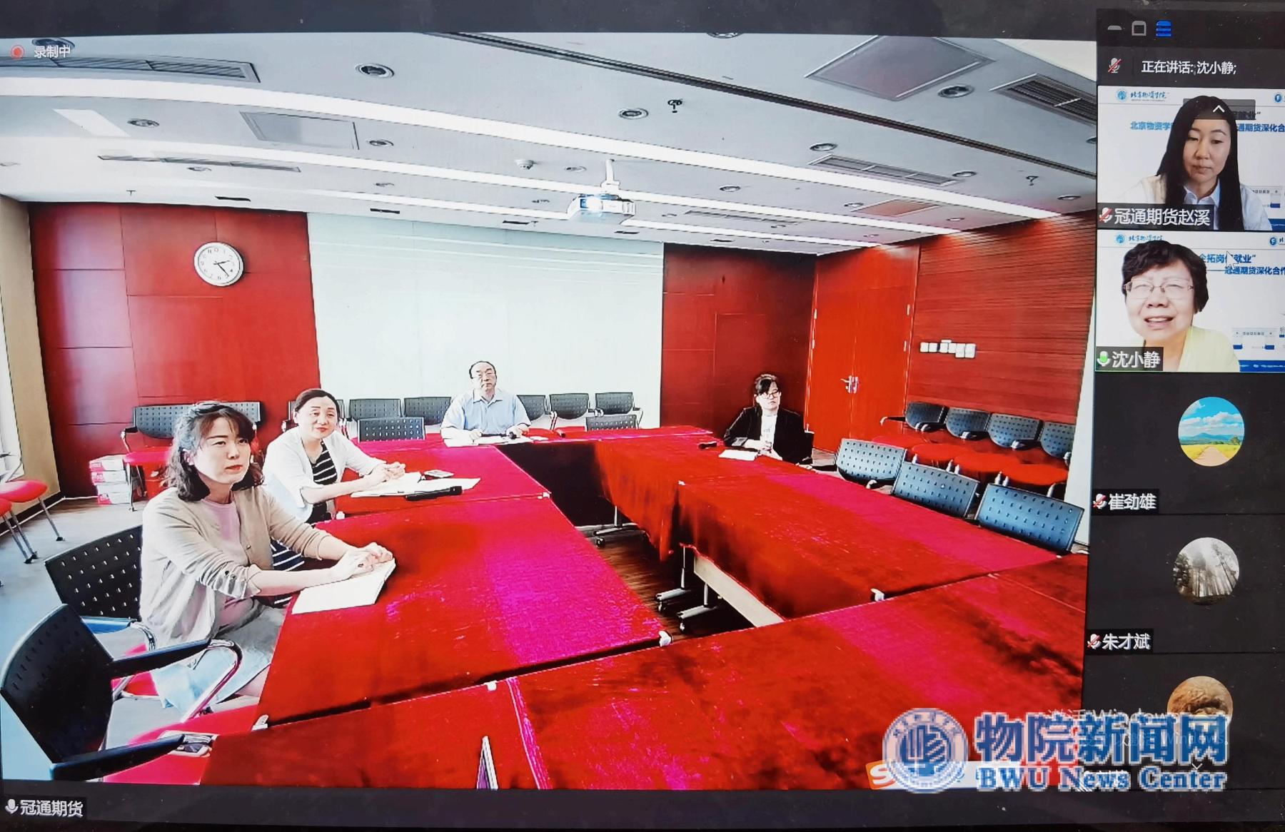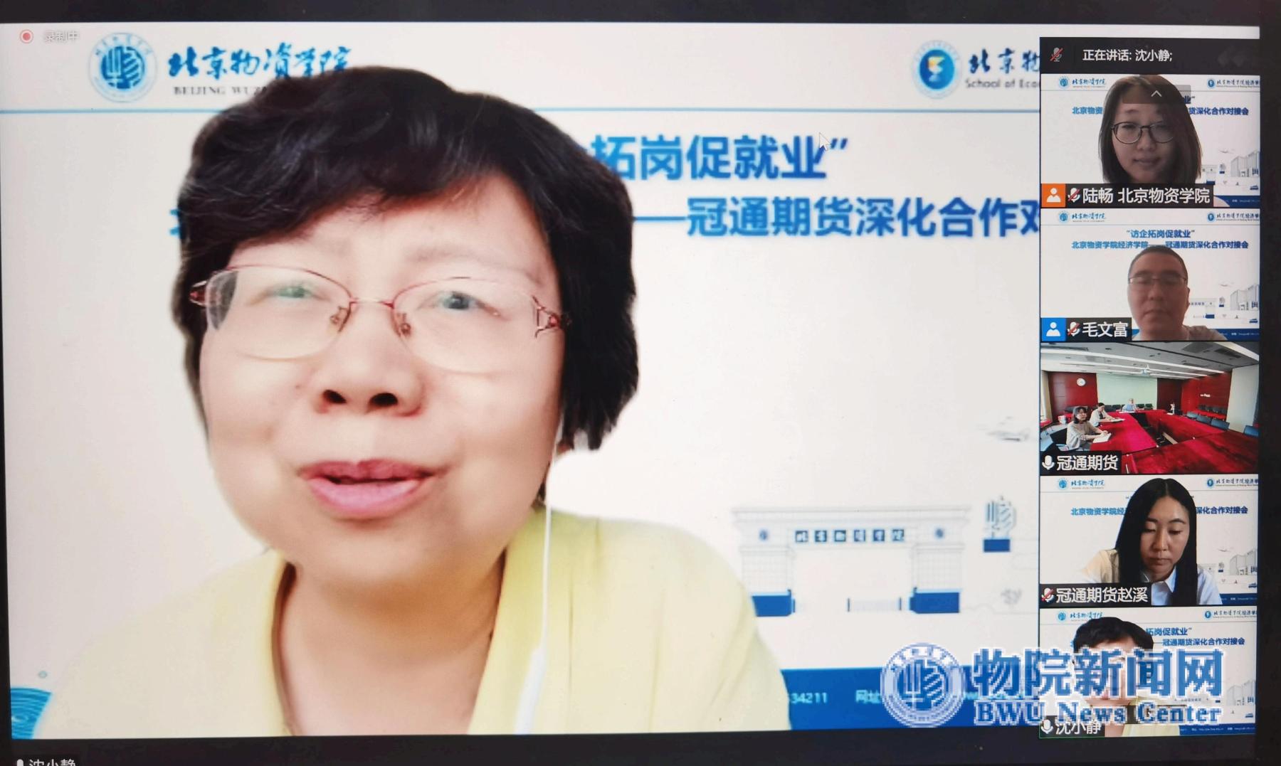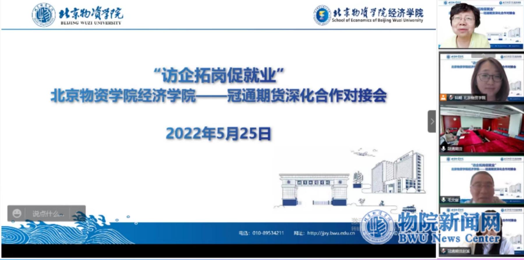 为落实教育部“访企拓岗促就业专项行动”要求,全面深化校企合作、供需对接,提升beats365就业质量和人才培养质量,2022年5月25日下午,公司党委副书记沈小静带队走访冠通期货有限公司,与冠通期货总经理母润昌,副总经理、员工赵溪,人力资源总监黄雪征,黑色品种分析师、员工段珍珍通过线上会议,就进一步深化校企合作开展交流。公司党委副书记毛文富主持会议,期货与证券专业负责人朱才斌,期货与证券教工党支部书记刘荔,校企合作对接联络人、辅导员陆畅一同参加会议。