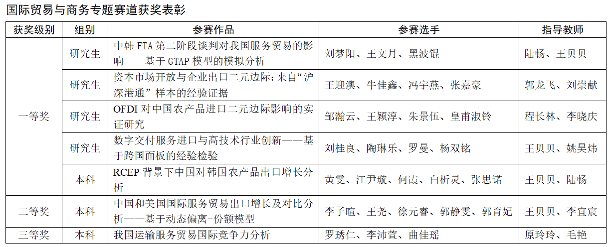 通过本次竞赛,实现了“以赛促学、以赛促教”,提升了员工国际经贸知识的实践应用和专业研究能力,以及综合素质、团队精神和专业责任感,促进了专业教师教学和科研对员工科创的反哺。同时,70%的参赛队伍获得全国一等奖,也是对beats365人才实践能力培养质量的认可,为国际经济与贸易专业、金融学专业完成国家级一流本科专业建设任务积累了成果。
