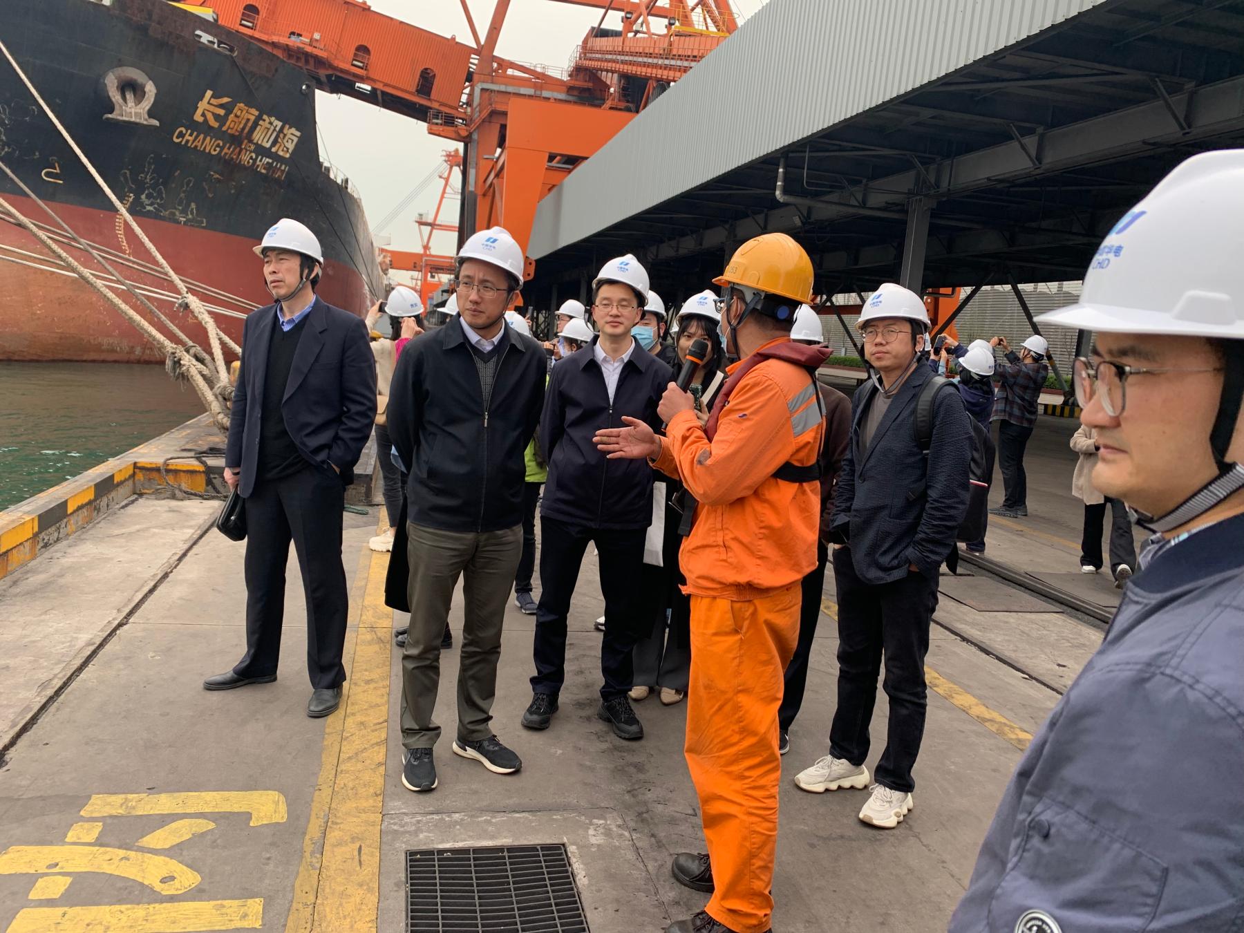 4月21日下午,在陈扬跃副区长的陪同下,物资公司一行参观了曹妃甸港华电煤码头、曹妃甸港矿石码头和中国五矿集团曹妃甸国际矿石交易中心,国际矿石交易中心是铁矿石期货交割库,可以提供仓单交割业务。