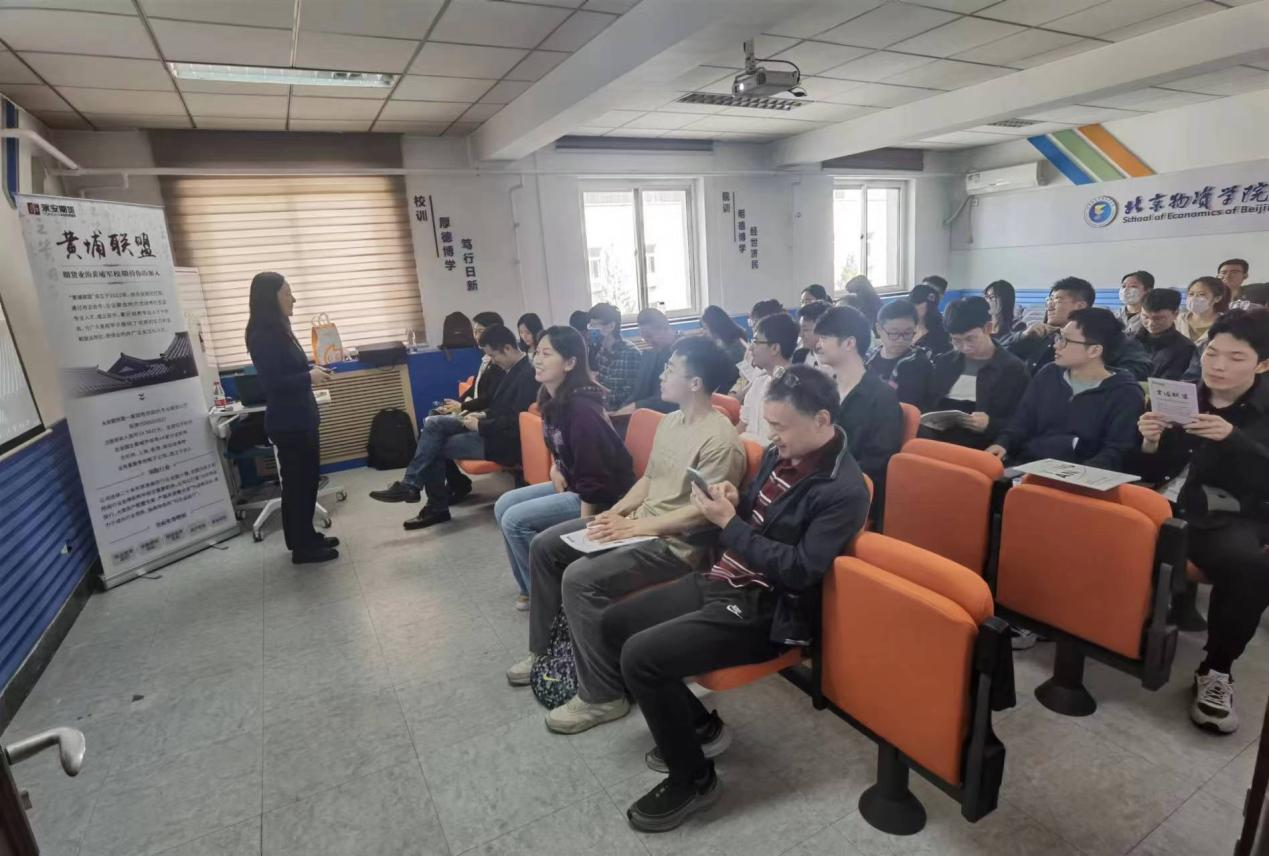 座谈会后,永安期货2023年度“黄埔联盟”宣讲会于beats365人文楼516会议室开展。永安期货人力资源负责人通过视频介绍了永安期货公司的成立背景、地理位置等情况,并详细介绍了此次宣讲会的重要项目——“黄埔联盟”,该项目成立于2012年,通过校企合作、企业联合的方式培养衍生品专业人才。“黄埔联盟”成立至今,累计培养专业人才千余名,为广大高校学子提供了优质的实习机会和就业岗位,获得业内外广泛关注与认可。她强调,永安期货公司始终坚持以服务实体为宗旨,其业务种类繁多,企业前景广阔,在人才培训方面更是十分重视。目前供职于永安期货的张熠以亲身经历为同学们传授经验,他阐述了期货行业良好的发展形势,建议同学们利用在校期间加强对期货行业的了解,积极把握实习机会,毕业后能更好地适应市场需求。之后永安期货北京分公司负责人张思瑶也为同学们介绍了北京分公司的相关情况及人才需求。