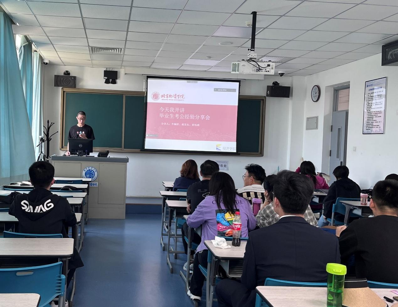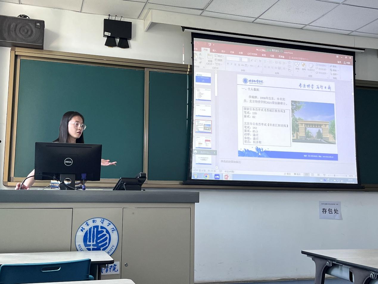 5月8日下午的公务员考试经验分享会邀请了已考上延庆区委党校公务员的20级西方经济学崔钰政、已考上怀柔区财政局的21级金融专硕李婉婷、先后获得四川某地财政局和选调生offer的21级金融专硕蒋昊东。他们从各自的考公经历出发,详细介绍了选岗的思路、笔试(申论和行测)的备考方法、面试的注意事项、体检和政审的流程等,并为同学们答疑解惑。备考公务员不仅考验的是考试、面试技巧,更多的是知识和能力的储备,他们作为党员和员工骨干,在工作服务中积累的经验是他们成功上岸的宝贵财富。