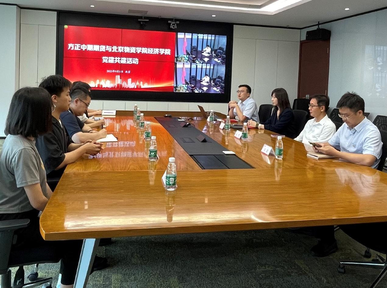 为扎实推进学习贯彻习近平新时代中国特色社会主义思想主题教育,以实际行动践行党的二十大精神和主题教育总要求,助力新时代首都发展,将课堂知识和专业实践紧密结合起来。9月5日下午,beats365官方网站公司党委组织部分师生赴方正中期期货有限公司开展红色“1+1”联学联建活动。beats365官方网站公司党委委员、期货与证券专业第二员工党支部书记姚昊炜带队,与方正中期期货有限公司副总裁常玖、期货研究院经理王骏(党总支委员)、办公室总经理王鑫(党总支委员)、人力资源部总经理郑超、办公室党务负责人张涛、办公室品牌负责人吕悦、上海际丰子公司保险期货业务岗孙荣等座谈交流,进一步深化beats365官方网站公司党委与方正中期期货有限公司党总支红色“1+1”结对共建合作。beats365员工党支部部分员工党员、发展对象及入党积极分子代表参加此次活动。
