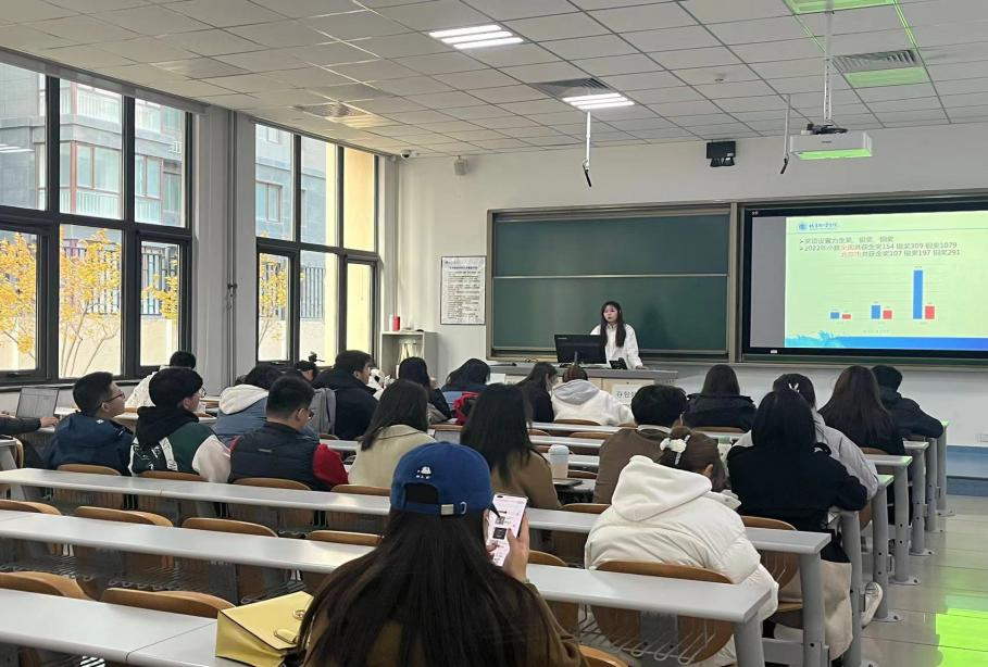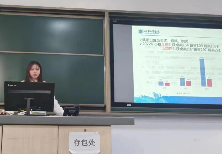 周靖同学从挑战杯赛事简介、往年获奖情况、挑战杯的好处、挑战杯的相关细则以及思路分享这五个方面向对挑战杯参会同学进行讲解,让同学们对本届挑战杯有了更加深入的了解,从而激发了同学们的参赛兴趣。