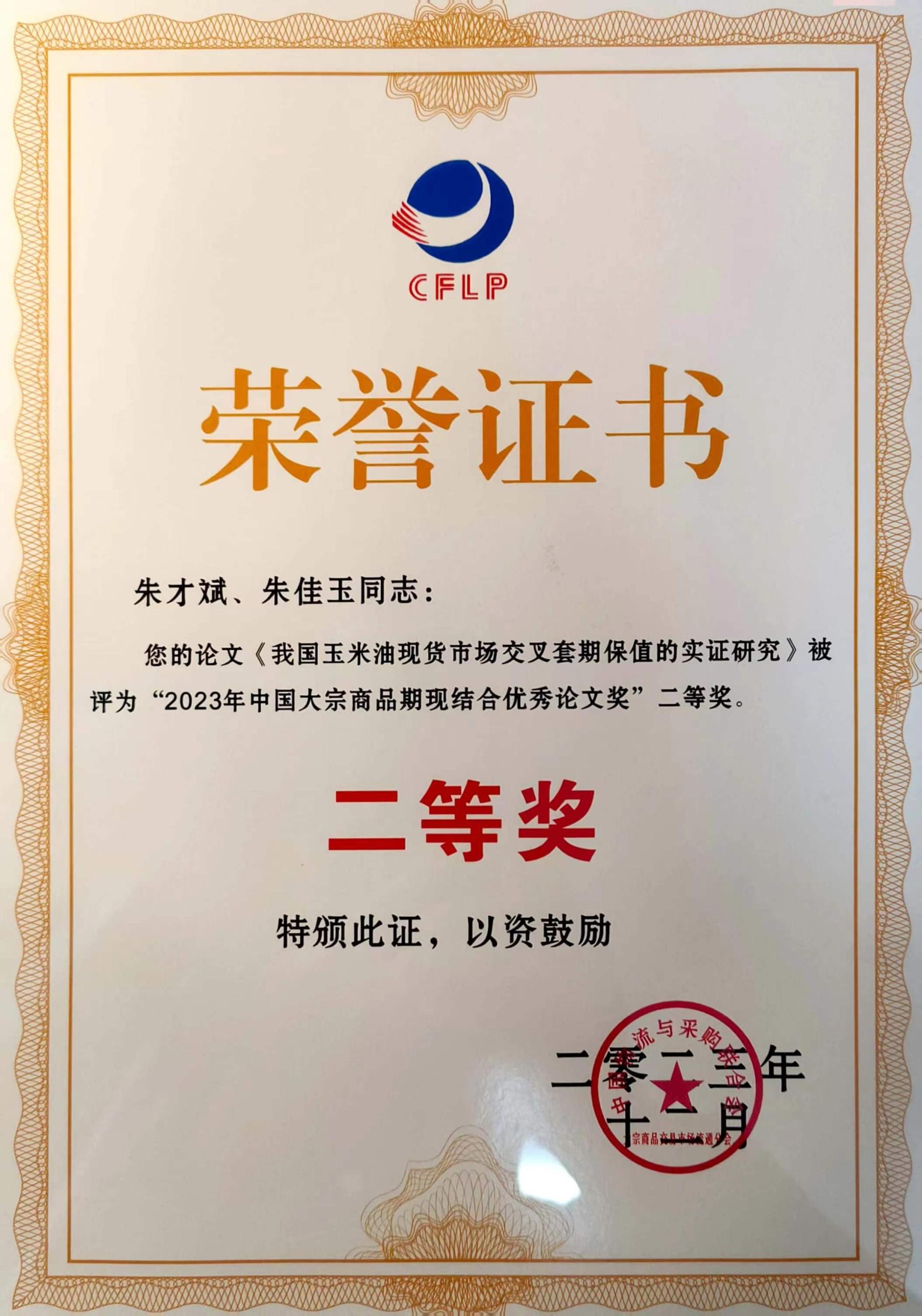 二等奖:我国玉米油现货市场交叉套期保值的实证研究——朱才斌等