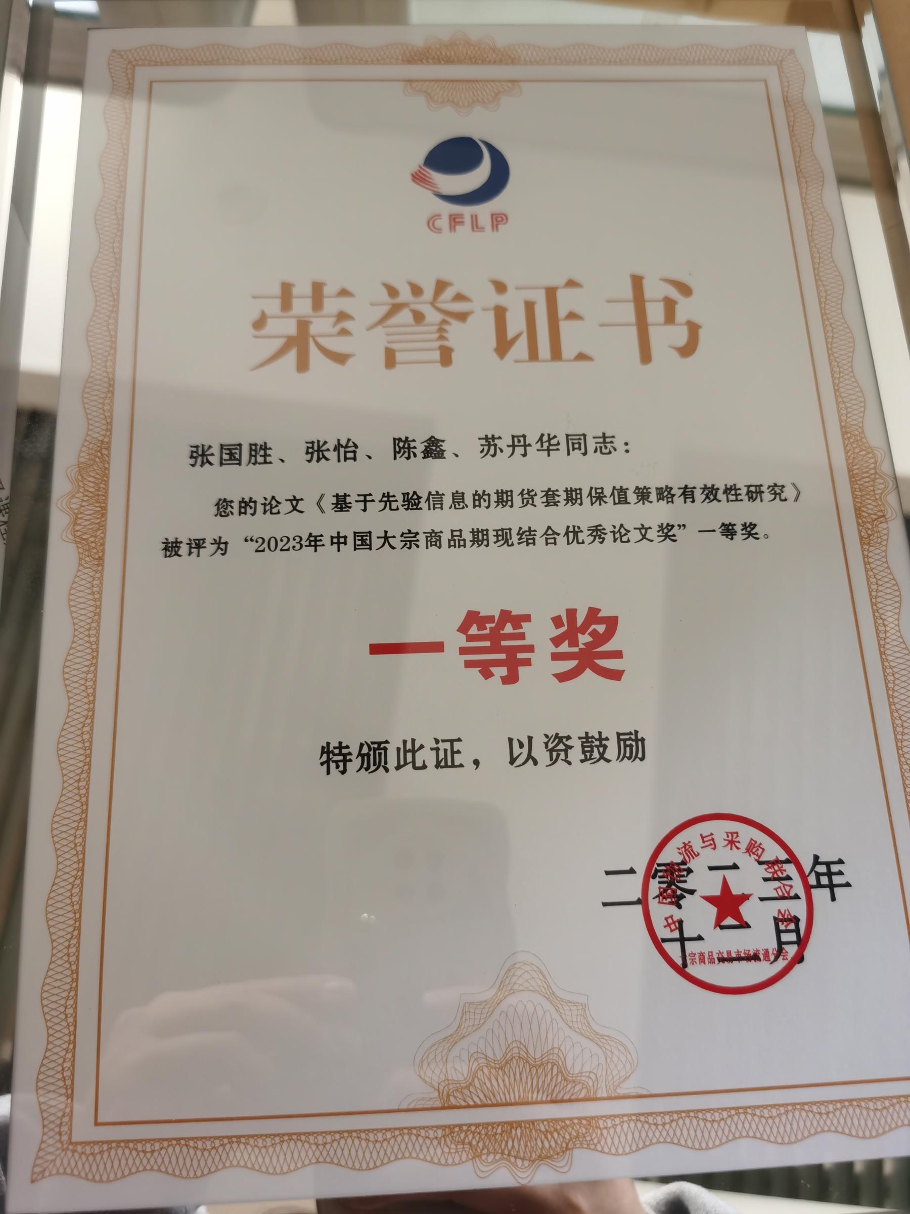 附:公司师生共获得“2023大宗商品期现结合创新发展大会”优秀论文一等奖1项,二等奖3项,三等奖5项,优胜奖8项。具体信息如下: