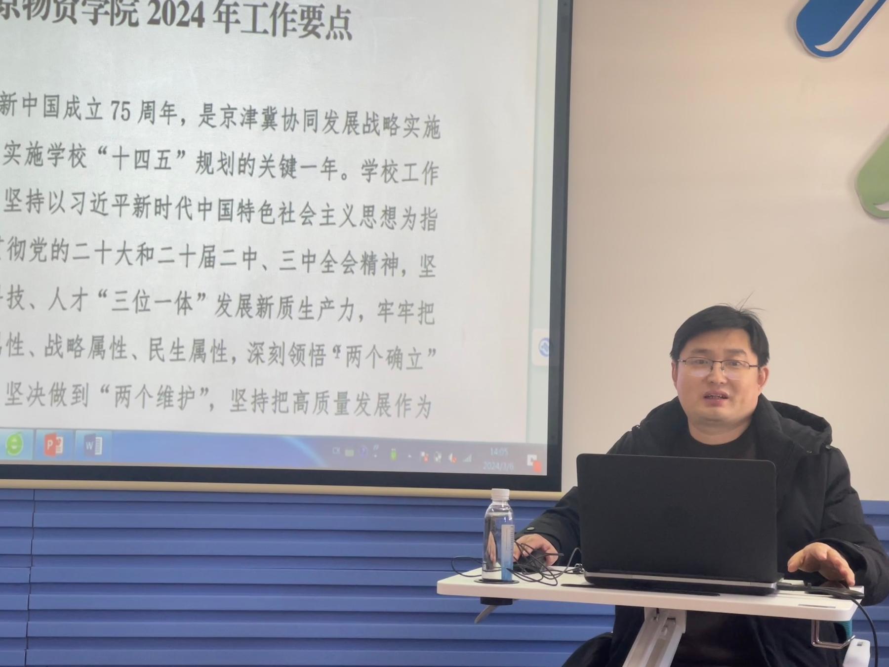 会议第一项是由公司党委常委、校办主任孙杰传达讲解公司2024年工作重点,孙杰常委分别从坚持党的全面领导;以立德树人为根本任务,提升人才培养质量;扩大对外交流合作,提升科研能力;加强教师队伍建设;校园文化建设;统筹发展与安全等六个方面详细清晰地介绍了2024年公司的工作重点。孙常委着重强调了要深入学习贯彻党的二十大和二十届二中全会精神,坚持统筹教育、科技、人才“三位一体”发展新质生产力,秉承“乘大势,建新局,做实事”的工作理念,统一思想、凝聚共识、谋划发展、动员鼓劲,推进有特色高水平应用型大学建设迈上新台阶。