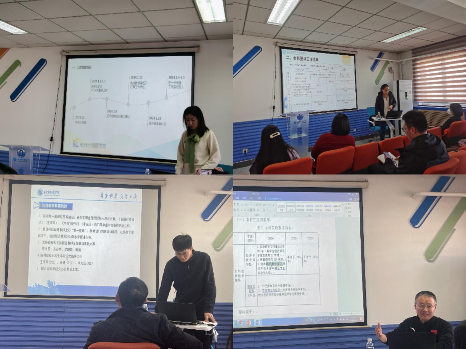 会议第三项,经济、国际经济与贸易、金融、金融科技四个系的系主任分别介绍各系本年度工作重点。对标公司“十四五”核心指标的重点工作,制定各系的重点工作清单,工作清单围绕团队建设、人才培养、团队队伍、教学研究与社会服务、国际交流与合作等方面展开。各系结合本系的实际情况,把各项任务落实到每位教师身上,逐步推进重点工作的完成。
