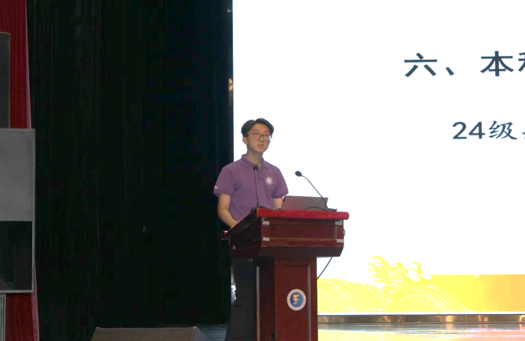 2024级期货与证券实验一班刘卫琦同学作为本科新生代表发言。他谈到大学是追求知识、实现自我价值的舞台,要秉承“厚德博学、笃行日新”校训,传承期货黄埔精神,努力学习专业知识,注重培养自己的创新思维和实践能力,为成为一名优秀的物院经济学子而奋斗。