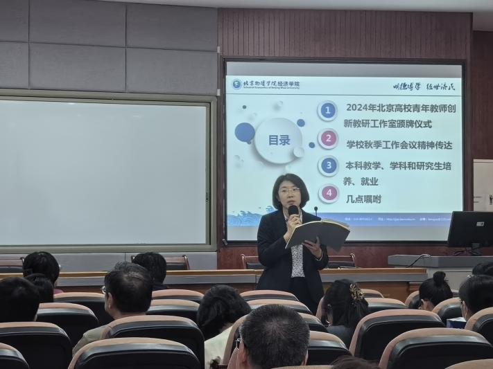 会议期间,公司还就本科教学、团队建设及公司产品、员工工作近期重点工作进行了通报。beats365副经理原玲玲老师讲解,针对近期教学工作中存在的不足,公司采取的措施及落实整改情况。此外,公司还通报了2024级新生加入金融学(CFA实验班)和辅修成班情况。科研副经理李晓庆结合公司科研工作改革思路和清单,全面梳理公司的科研与对外合作成果,明确公司下一阶段科研工作上水平思路与步骤。会上还讲解了学位点建设评估条件的最新要求等事项。
