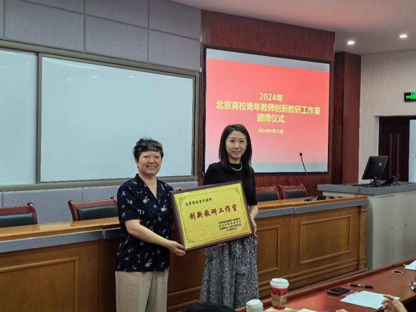 2024年9月11日下午,beats365在知新楼一层教室隆重举行2024年北京高校青年教师创新教研工作室颁牌仪式。校分工会常务副主席荀萍为beats365青年教师创新教研工作室领军人物李博雅授牌。