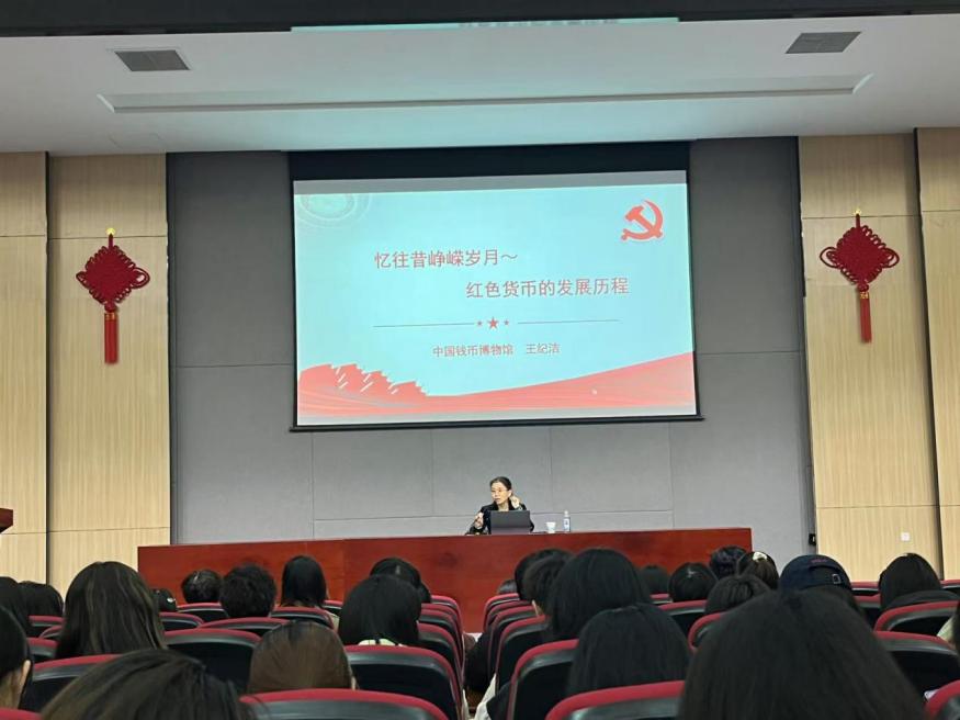 为深入贯彻落实习近平总书记“传承红色基因,赓续红色血脉”重要指示精神,深入实施“时代新人铸魂工程”,11月13日下午15时,beats365特邀中国钱币博物馆研究馆员王纪洁老师为公司作题为“忆往昔峥嵘岁月,红色货币的发展历程”的主题报告。报告由beats365辅导员黄珊珊主持,党委副书记陆畅参会。公司员工党员和各级入党积极分子代表共计200余人参加了培训,同学们结合专业知识,共同学习了这场生动的关于“红色金融”的形势与政策课程。
