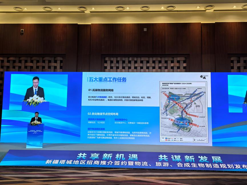 1月14日,新疆塔城地区招商推介签约暨物流、旅游、合成生物制造规划发布会在北京国家会议中心举行,左敏经理、张闯副经理以及公司编制新疆塔城物流发展规划项目组成员出席此次活动。此次会议的召开,标志着公司主持完成的《新疆塔城地区现代物流产业发展规划(2024-2030年)》正式公开发布,这是公司服务“一带一路”国家战略,深入开展社会服务的重要标志性成果。
