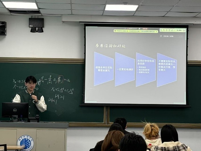 接着,葛晨学长分享了他在不同专项赛中的参赛心得。他建议beats365的同学们选择更贴合专业背景的赛事,例如“青振京郊”乡村振兴专项赛和“青砺基层”社会治理专项赛。他强调,参赛过程中需要结合当地实际情况、本校特色以及新媒体手段,充分展现项目创新性与实践性。同时,他指出“青砺基层”专项赛偏向科研论文方向,同学们可以根据调研结果撰写作品或对已有学术论文进行修改,以更好地契合赛事要求。此外,葛晨学长还提醒大家,参与“挑战杯”并不要求实际创业,而是需要提出切实可行的解决方案,这对提升综合能力非常有帮助。在互动环节,葛晨学长耐心解答了同学们的疑问,现场气氛热烈。
