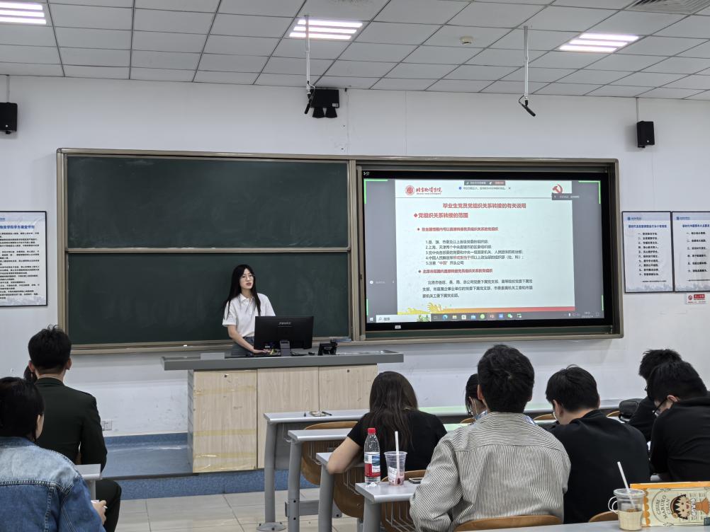 最后,黄珊珊老师对毕业生党员组织关系转接工作进行了详细讲解,包括转接范围、流程、申请保留组织关系的条件及办理流程等方面,强调了组织关系转接的重要性,要求毕业生党员们严肃认真对待,珍视党员身份。