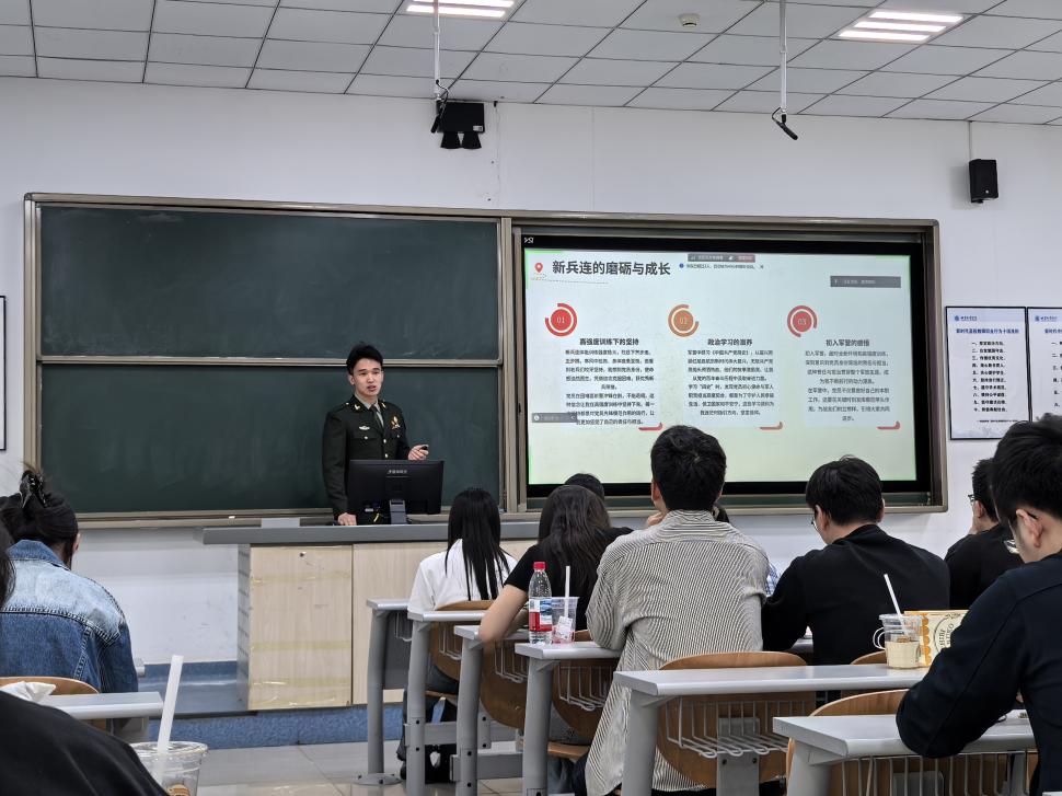 退伍士兵代表任树鑫同志以《红色军旅路,初心永闪耀》为主题,分享了他在军旅生涯中的故事与成长感悟。他讲述了从新兵连的艰苦训练到孤独的仓库坚守,再到片区比武的拼搏经历,深刻体会到党员身份在军旅生活中的重要性。这些经历都让他更加坚定了党员的理想信念和初心使命,支撑他继续迎接今后学习生活等人生重要考验。他希望将这份感悟融入校园生活,传承红色基因,为同学们树立榜样,为社会贡献力量。