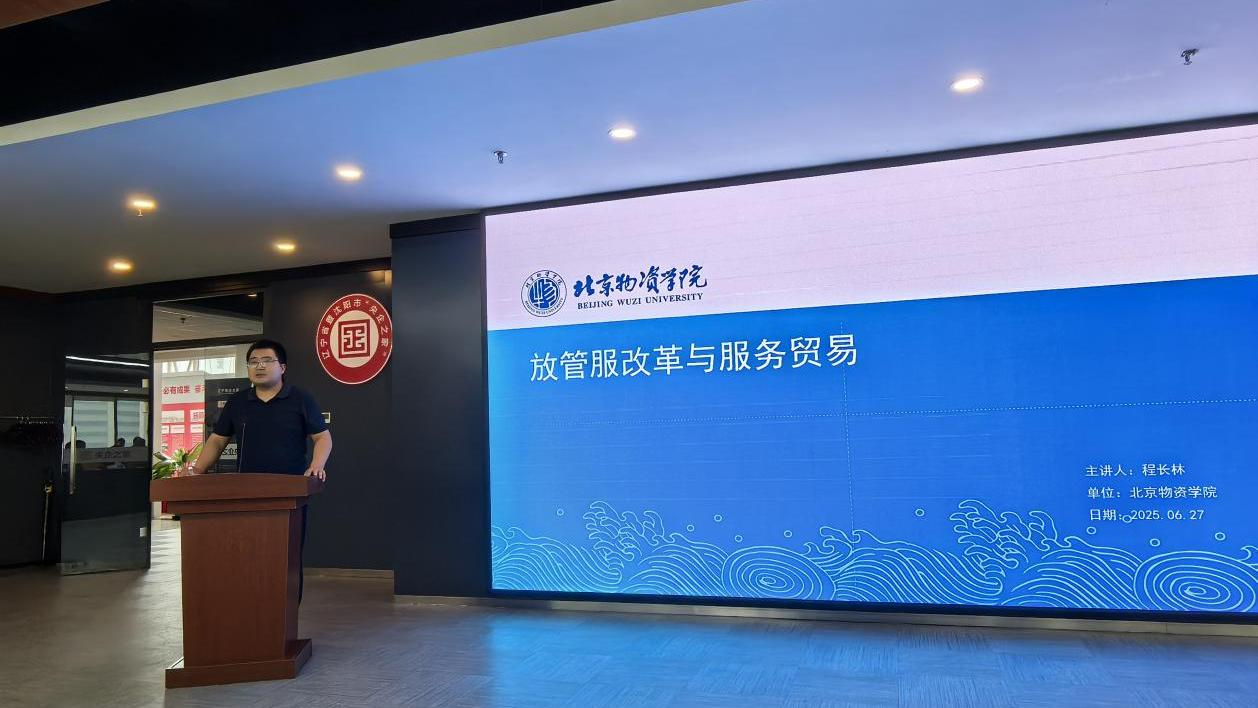调研期间,beats365经理助理程长林副教授在开发区产业会客厅为辖区内各相关单位做主题为“放管服改革与服务贸易”专题报告。讲解当前国内外服务贸易主要类型、特征及模式等,并以浙江省放管服改革先进经验为例,结合开发区工作实际,讲解放管服改革背景、政务服务创新模式、先行先试制度设计,推动政府数字化转型,优化营商环境,提升政务服务效能和品质等内容。