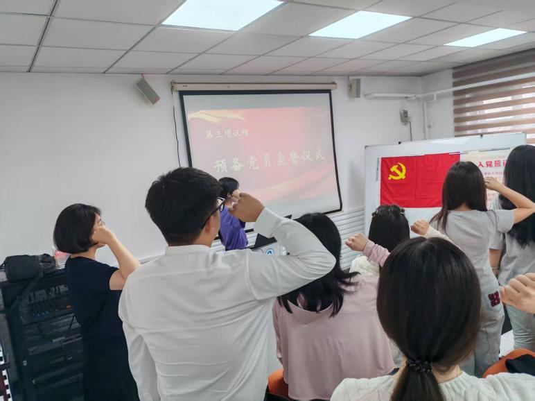 交流会后,在公司党支部书记黄珊珊老师领誓下,全体新党员面向党旗庄重举起右拳进行入党宣誓仪式,作出庄严承诺,发出了“我志愿加入中国共产党,拥护党的纲领,遵守党的章程……”的铮铮誓言,坚定了“对党忠诚,为人民服务”的初心使命。