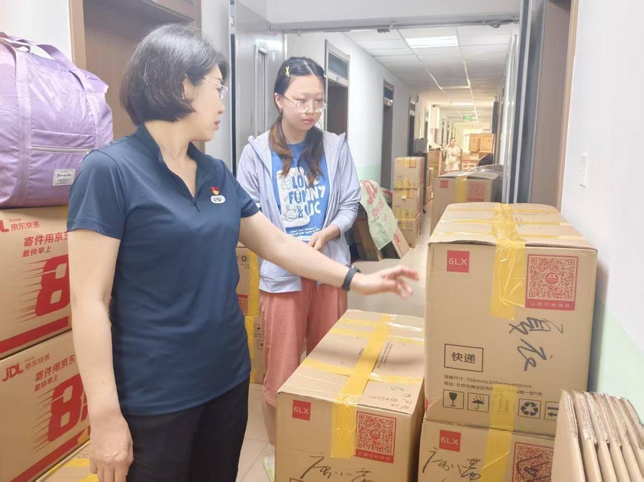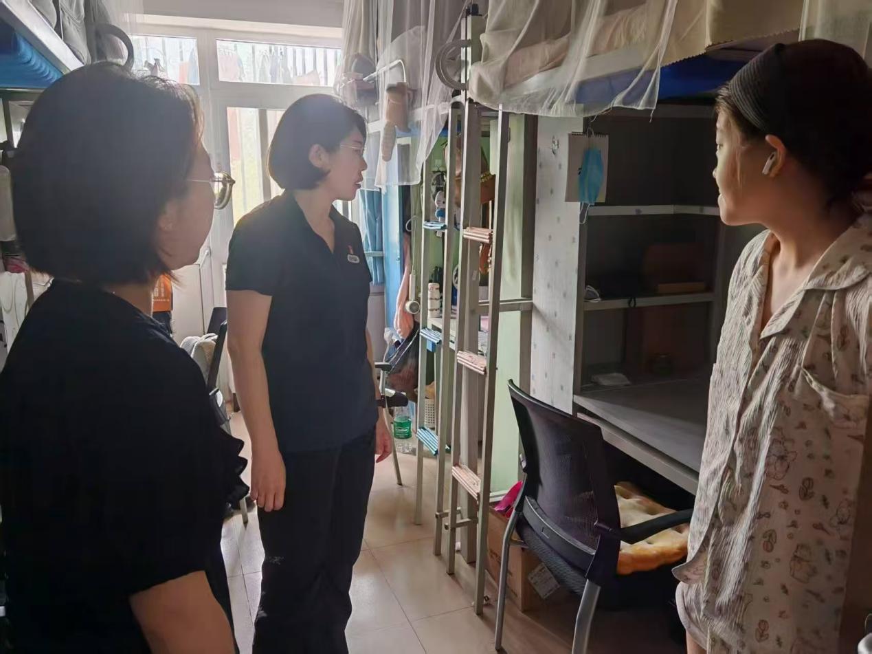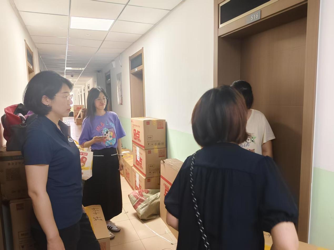 为深入了解员工需求,确保宿舍搬迁工作顺利开展,7月4日中午,公司党委书记付莉、副书记陆畅、辅导员黄珊珊走访2号楼、5号楼宿舍,亲切慰问正在打包行李、准备搬迁的员工,并现场协调解决实际困难。