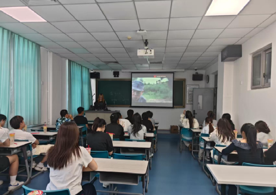 同学们观看完视频后,交流分享环节点燃思想火花。有的同学聚焦阅兵式中老兵方阵,感慨“他们是历史的见证者,抗战精神在岁月中愈发厚重”;刚经历军训的新生,则结合训练体悟,谈到“军训的苦累,让我理解先辈抗战的艰辛,磨炼的不止体魄,更是爱国担当”。还有同学分享假期观看《南京!南京!》的触动,呼吁“铭记苦难,更要以行动守护和平”。诗歌朗诵、红歌传唱穿插其间,《我爱这土地》的深情诵读,《保卫黄河》的激昂合唱,让抗战精神在青春表达中熠熠生辉。