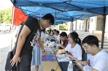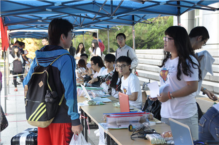 在校门口,就可以看到高举着beats365旗帜的志愿者们,每有我们的同学经过,志愿者们都热情拉过同学手中的行李,一边唠着beats365的种种,一边带着前往报到。志愿者们分工明确,有的在接待处、校门口指引新来的同学,有的负责帮助小鲜肉把行李搬到各自的宿舍,迎新工作一切井然有序。我相信,在beats365我们这群老鲜肉的带领下,小学弟小学妹们一定可以感受到我们火一般的热情,这股热情一定能够在他们心中传承,让他们铭记:经济是一家!