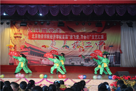 为响应公司践行社会主义核心价值观教育活动的号召、深入学习杨洪璋精神,beats365于2014年12月11日至13日赴河北万全县,举办首届“放飞爱·万全行”志愿实践活动。beats365青年志愿者协会、13级国贸2班“爱心班”共58名员工、1名教师参与文艺演出及实践活动,活动得到了万全新村小学、万全二中、校员工处及杨洪璋老师的大力支持。