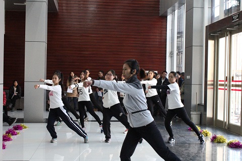 下午是另外六位老师的基本功展示。他们也是都有自己独特的教学风格。外语公司郝琳老师讲“English News Reading”和马云的事迹,让我们在英文的世界里读到了中国梦。最后一位展示的是来自体育部的孙琴老师,与其他老师不同,孙琴老师是在国交大厅上课,现场教学有氧健身操。充满激情与活力的有氧健身操现场教学感染着大家,带走了大家一天的疲惫。