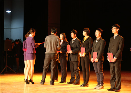 紧接着进行了校级、院级优良学风班、党团知识竞赛和读书报告大赛的颁奖仪式,公司党总支副书记张建宝老师和beats365分团委书记夏蓓老师担任颁奖嘉宾进行颁奖。颁奖仪式之后,到了激动人心的抽奖环节,五名幸运观众通过滚动大屏幕的方式抽选出来,获得了由beats365本土创业品牌青年绘提供的咖啡券。