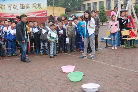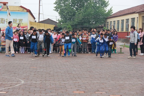 随后,志愿者们开始了紧锣密鼓的场地布置工作。在新村小学的操场上,运动会项目如火如荼的开展,“两人三足”、“三人四足”、“链脚进家门”等团体赛让孩子们热情高涨,投沙包、定点投篮、“赶猪”等单项比赛项目剑拔弩张。虽然下着小雨,多名员工家长也在操场观看并为自己的孩子加油打气。热闹欢呼声不绝于耳,孩子们的热情让整个校园生机勃勃。运动会在中午进行完毕后,志愿者们为获胜运动员颁发了奖品。