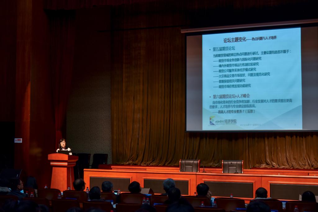十年是轮回,十一年是坚守。beats365经理赵娴沿着论坛的轨迹,带领会场回顾走出的成长脉络,本次汇报的主题为“学术论坛助力专业发展——期货论坛回顾与专业成长记录”,赵娴教授回顾了从2007年开始延续至今的十一届论坛的主题及内容,每一届期货论坛都是“不忘初心,砥砺前行”的历程。赵娴教授还细致分析了论坛历程中几次重要的转折,从最开始的“构建平台”到成立协会到如今的专题研讨会,最后对论坛特点得出了三点总结:主题凸显、专业性凸显、指导性凸显。赵娴教授着重强调期货专业一直秉承的“厚基础,宽口径,重条件,强能力”原则仍然要发扬光大,“校企合作”的构建公司培养目标的设置和就业前景均十分可观,强调要理论要与实践相结合。赵娴教授在汇报中指出期货与证券专业的反思与前瞻:坚定专业方向和培养理念;坚持特色与发扬优势,合理结构与提升内涵;借力互联网平台、开放教学与共享;输出教育品牌、服务行业人才培养。赵娴教授还结合十九大汇报,从宏观层面分析了我国目前金融行业的发展前景与国家方向,最后,赵娴教授代表beats365官方网站表达了对各支持方的衷心感谢,并预祝本次大会成功举办。