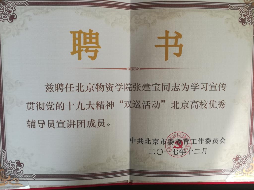 1、公司党委副书记张建宝老师被选为全国“双巡”活动北京高校优秀辅导员宣讲团成员(见链接2),以《矛盾新变化、理论新飞跃、青年新使命》为主题于北京建筑大学开展十九大精神校园巡讲活动,认真、圆满完成宣讲任务。