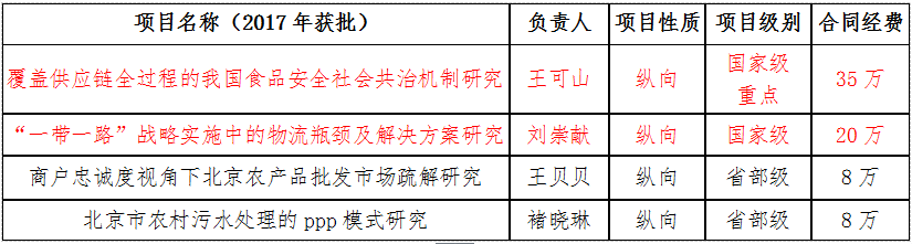 5.加强科研机构与团队建设,继续推进标志性科研成果建设。(1)标志性科研成果建设持续发力。一是依托城市农产品流通研究所,撰写《中国城市农产品流通发展报告》,打造我国农产品流通领域的权威年度行业分析报告。2017年出版的《中国城市农产品流通发展研究报告》(2016)入选中国社会科学出版社的“中智智库报告”。二是依托流通经济研究所,在全面梳理近年发表的专业文献的基础上,进行文献分类、综述和摘编,分不同专题编辑出版《流通经济研究动态》,目前已出版批发专题、零售专题、日本物流专题、供应链专题和商业综合体专题五本,目前正在编辑大宗商品专题,年底可交付出版。三是依托期货研究所,启动了《中国期货业发展报告》的编制工作。(2)推进科研机构成果导向管理初步见效。2017年开始对校院两级6个科研机构进行成果导向的管理,对研究所的运行提出成果要求。目前来看,研究所在标志性科研成果方面的分布不均,要对研究团队提出更高要求,要树立并明确代表性成果的形式。(3)加强高层次人才引进与科研团队整合,凝聚科研优势。2017年引进学术带头人1人,加强了期货及衍生品方面的学术力量。另一方面,针对目前金融学与金融学(期货与证券方向)专业团队研究力量分散、方向不明确、团队合力不强的突出问题,启动大金融概念下两个专业教师的跨专业、融方向的科研整合工作,将有数理和工科背景的博士集中到衍生品前沿方向,在教授的带领下开展团队研究。探索将无形的松散的项目联系变成有形的固化的团队和机构联系,鼓励青年博士尤其是新进教师参与到团队中,致力于高水平成果的工作。