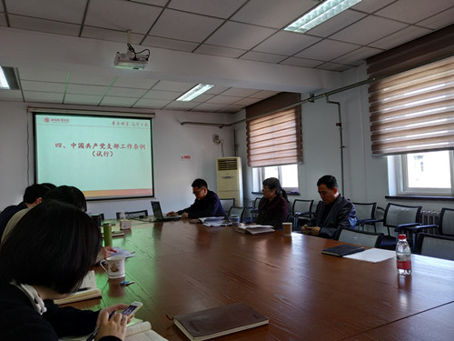 之后姚昊炜老师和车卉淳教授分别作了《中国共产党支部工作条例(试行)》和《公司2019年全面从严治党工作会精神》。姚老师从党支部工作条例出台的背景及意义出发,对党支部工作条例全文逐章进行了重点解读;车教授从十九届中央纪委三次全会精神、十二届北京市纪委四次全会精神、教育部全面从严治党大会精神、北京市教育系统全面从严治党大会精神等四次会议精神出发,介绍了公司2019年全面从严治党的工作会议精神的来历和要求。