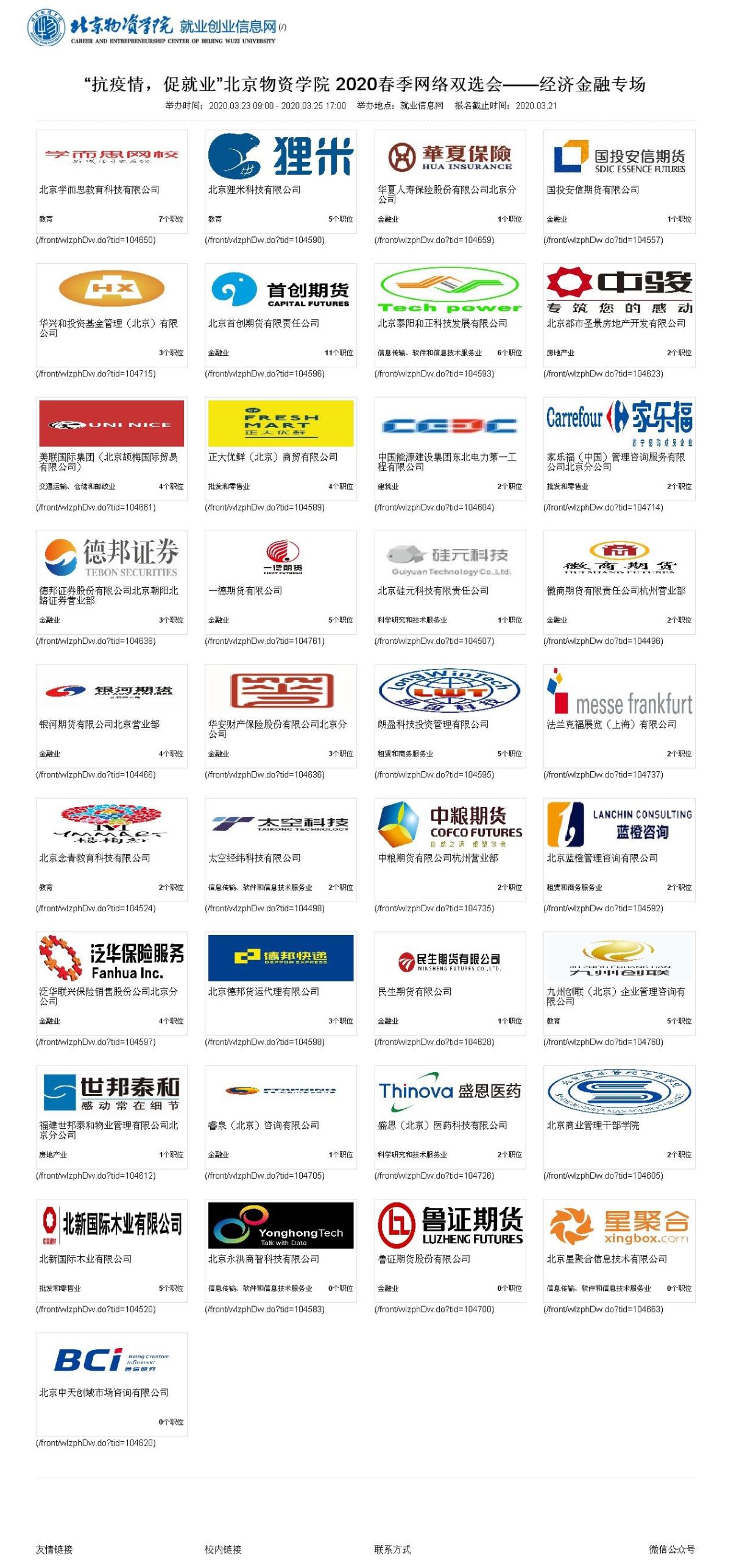 为在防疫期间拓宽毕业生就业渠道,增强企业招聘的针对性和时效性,更好地搭建就业服务平台,beats365于2020年3月23日至25日召开“抗疫情,促就业”beats365官方网站2020春季网络双选会——经济金融专场。在公司就业指导中心协助下,通过网络平台直接搭建企业与毕业生的沟通渠道,企业可通过专业的网络招聘平台发布详细招聘信息、与毕业生实时沟通、收取简历。经过公司的广泛宣传动员,有包括一德期货、首创期货、民生期货等在内的38家企业参加招聘,提供近百个岗位。招聘会面向全校员工,在年级辅导员和班主任的一对一动员、各年级广泛宣传下,共有313人的员工参与量,在一定程度上促进了疫情期间员工就业求职的积极性。