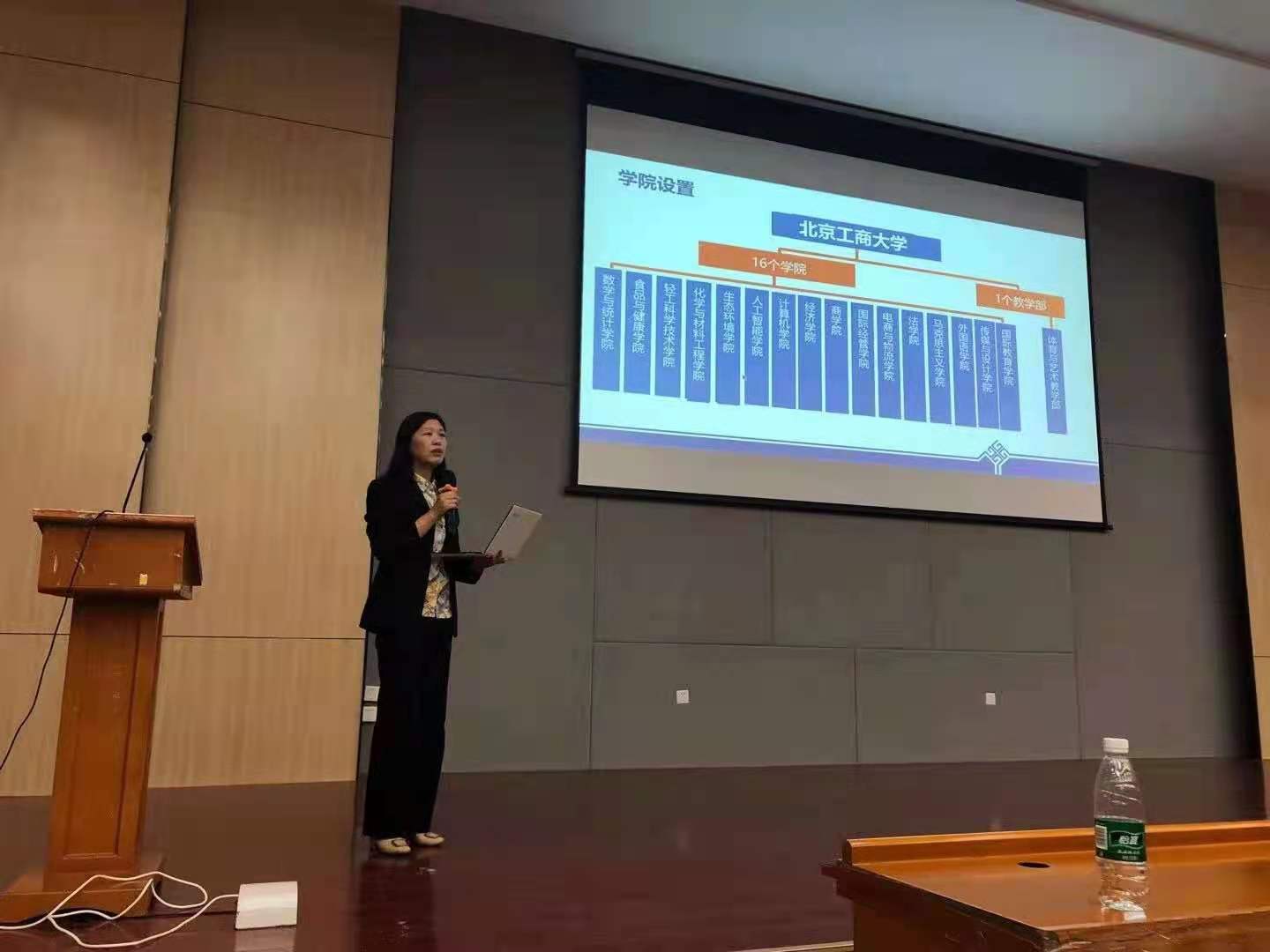 接着,beats365经理助理冯丽宇老师从微观角度切入,介绍了beats365近年来的考研情况以及考研优势;最后,北京工商大学beats365国际贸易系主任朱振荣老师进行宣讲,详细介绍了北京工商大学的考研优势和考研政策,给了同学们更多选择的机会。