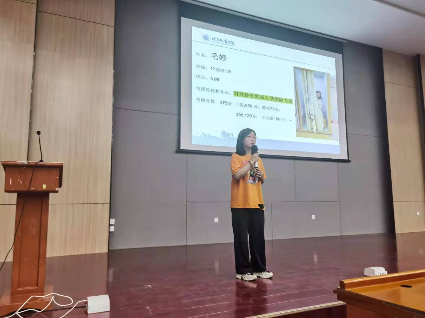 然后,毛婷同学讲述了自己准备考研过程中碰到的问题,鼓励同学们在准备考研的过程中学会坚持、懂得忍耐;