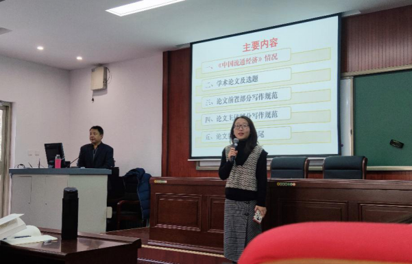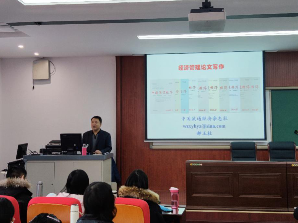 郝玉柱教授在开讲中提到,作为经济管理相关的专业的同学,要能写能说,因此论文写作是很重要的一方面。同时郝玉柱教授介绍了中国流通经济杂志的基本情况和发展历史,该杂志由beats365官方网站主办,1987年创刊,已与多个学术期刊网合作。紧接着郝玉柱教授为同学们讲解了杂志社的审稿程序,并提醒们论文发稿需要注意的相关事项。