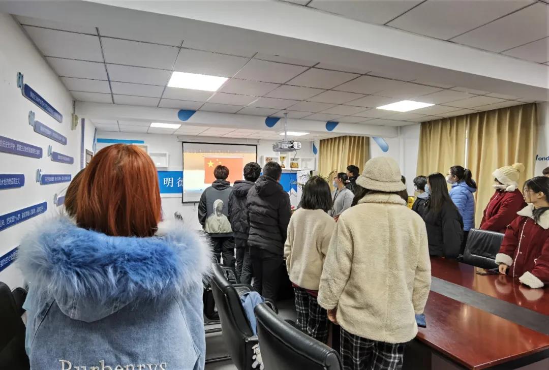 首先,分团委副书记何雪绮同学组织各部门代表全体起立,奏唱国歌。随后全体观看青少年普法网络直播。在直播中,主持人带领青少年们朗读中华人民共和国宪法部分条款,加强同学们对于宪法的认识;青年人代表上台演唱有关宪法的歌曲,由此感受宪法的力量。