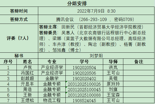 按照beats365官方网站疫情防控期间研究生线上视频学位论文答辩实施方案要求,本次毕业论文答辩采取腾讯会议线上方式,于7月9日上午8:30进行。现将具体要求及答辩安排予以公布,请各位同学提前做好准备。