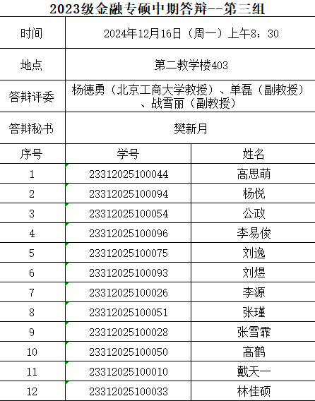 2023级全日制金融专业硕士研究生,以及已完成学位论文开题,并计划于2025年申请学位论文答辩的其他在籍全日制金融专业硕士研究生。