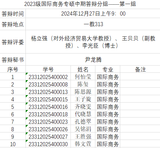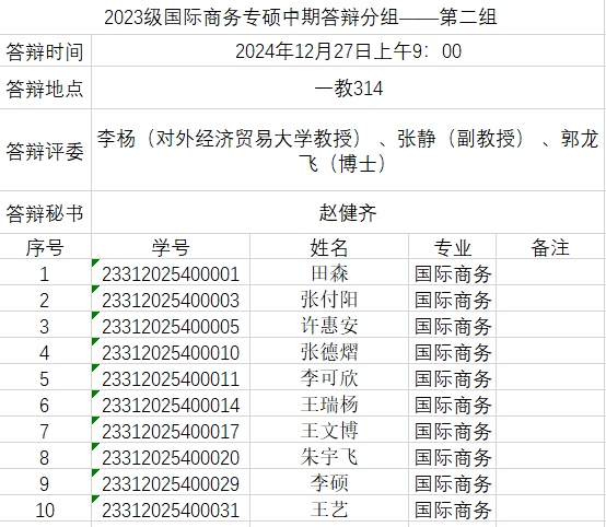2023级全日制国际商务专业硕士研究生,以及已完成学位论文开题,并计划于2025年申请学位论文答辩的其他在籍全日制国际商务专业硕士研究生。