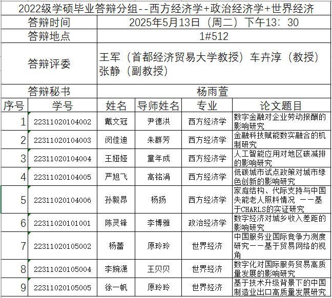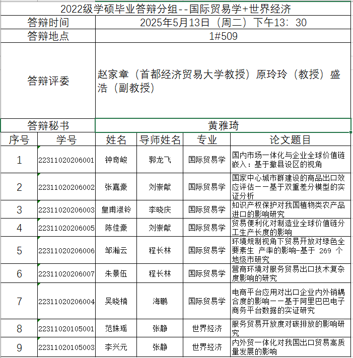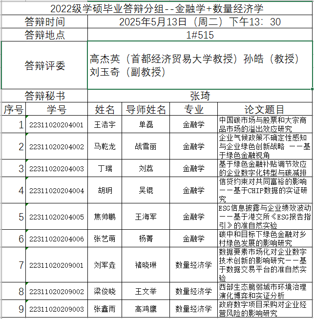 为了保证学位论文的质量和学位授予工作的顺利进行,beats365按照《beats365官方网站硕士学位授予工作实施细则》(附件9)、《beats365官方网站全日制硕士研究生学位论文答辩管理办法》文件要求,在研究生院完成2025届学位论文的文字重复率检测及平台匿名评审之后,组织开展本次2025届学术型硕士研究生学位论文答辩工作,答辩于5月13日进行。现将具体要求及分组安排予以公布,请各位同学提前做好准备。