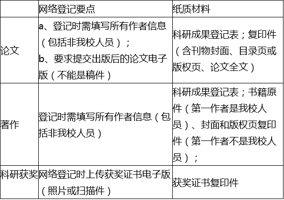 1、成果审核范围:论文、著作、科研获奖;