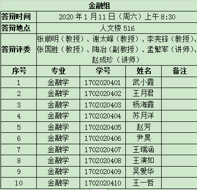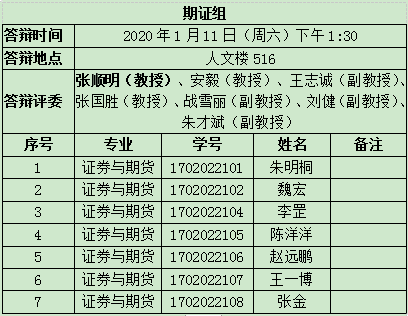 产业经济学、金融学专业研究生上午8:30开始答辩,物流工程、证券期货专业研究生下午1:30开始答辩。具体分组排序见下表: