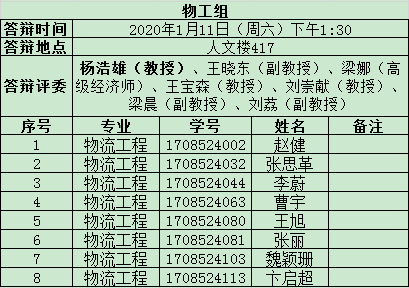 所有参加学位论文毕业答辩的2017级研究生(包括物流工程方向导师为beats365教师的研究生),个人务必请于1月9日(周四)下午4:30前将电子版(Word版)、纸质版答辩论文交至专业负责人,负责人于1月9日下午4:30前将汇总电子版答辩论文发至jjxykm@126.com;以下纸质材料交至人文楼523室: