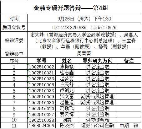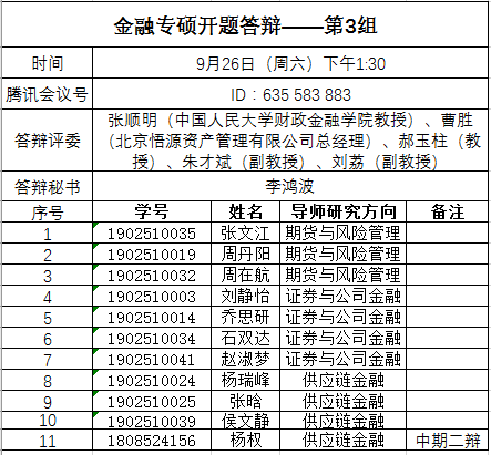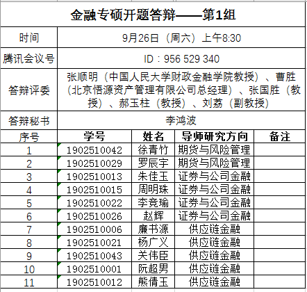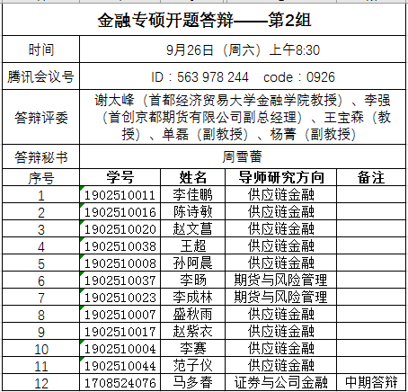 2019级两年制金融硕士研究生学位论文开题考核安排