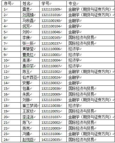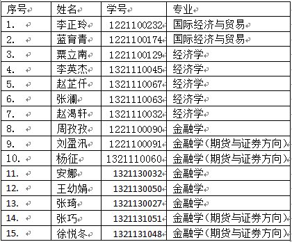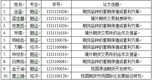 注:本模块接受员工补报名,面向2012和2013级期货证券专业员工,曾获得各级各类学科竞技竞赛奖项的员工优先。请有意向报名的同学于6月16日前将纸质版简历及论文选题(附在简历后)交至人文楼519陆老师处,同时发送电子版至13581626968@139.com