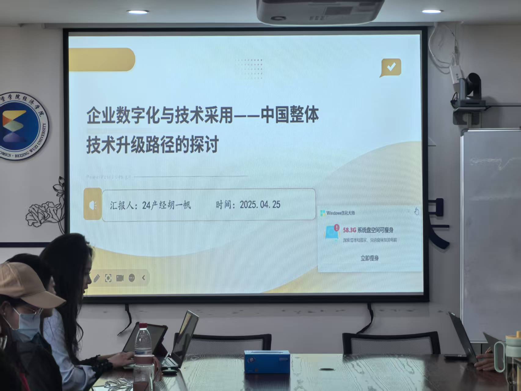 胡一帆同学分享的是高远东、陆子顺和项后军发表在《经济研究》2025年第1期上的文章《企业数字化与技术采用:中国整体技术升级路径的探讨》。该论文基于调整成本理论揭示了企业数字化对技术采用的促进作用。企业数字化通过降低技术采用的内部调整成本(如供应链、人力资本等领域的适配成本),显著加速了企业对外部技术的吸收采用。实证分析显示,这种促进作用在排除企业数字化本身对数字技术自身需求后依然成立,证实了数字技术的通用目的属性。