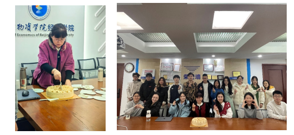 会后,师生共同分享了美味的蛋糕,庆祝本学期“产经学术沙龙”完美收官,现场洋溢着欢乐与温馨的氛围。