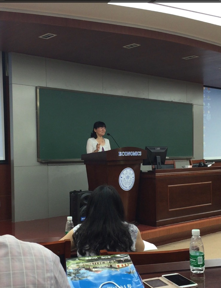 在两天的会议中,培训会议以参会者的主旨演讲和交流研讨两种方式展开。发表主旨演讲的专家有:清华大学经管公司于增彪教授、厦门大学王亚南经济研究院Brett Graham助理教授、上海财经大学金融公司刘莉亚教授、清华大学经管公司钟笑寒副教授、高等教育出版社刘清田博士等。2016年7月17日上午,与会教师就双语教学的教材选用、教学方法以及学习方法展开了热烈的讨论,我系教师车卉淳教授在小组交流讨论环节进行了发言。